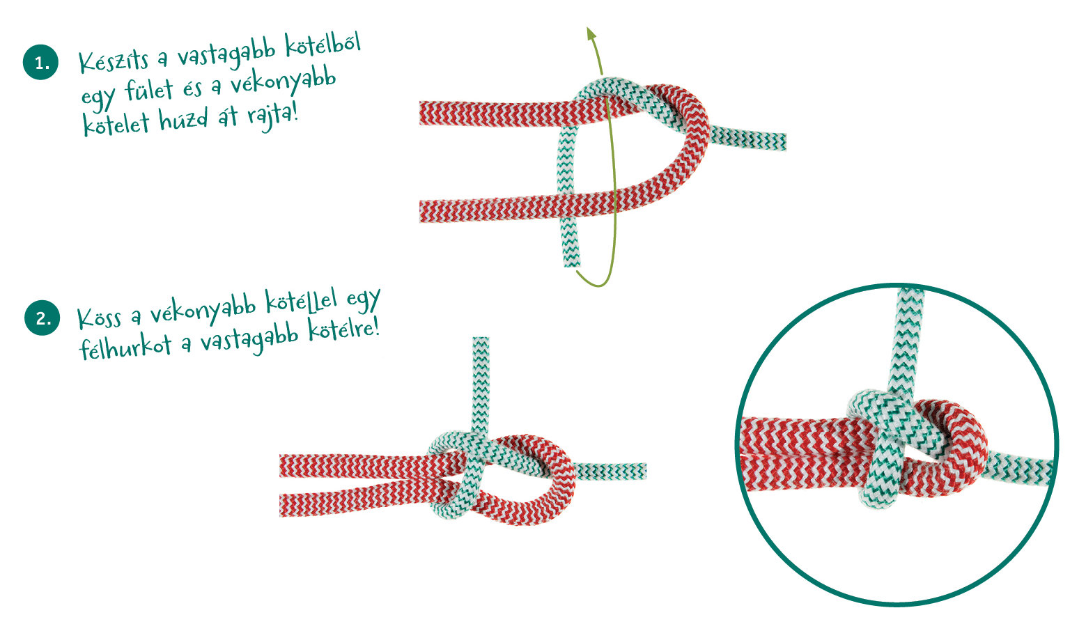 - fontos, hogy a csomó jól átlátható és oldható legyen,