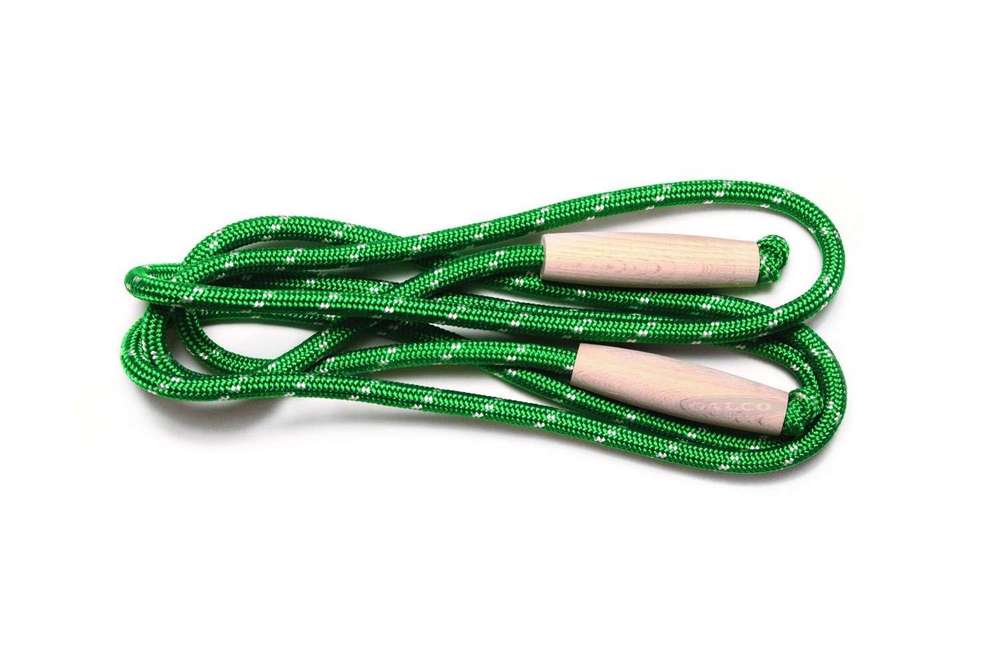 Fonatolt kötélből készült hagyományos ugrálókötél, minőségi fa nyéllel. Az erősített ugrálókötél általánosnál nagyobb átmérője megnövelt súlyt eredményez, ami intenzívebbé teszi az edzést.