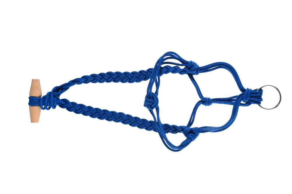Megfelelő nyúlású kötőfék, karikával és fapöcökkel. Kényelmesen illeszkedik az állat fejére, sem az evésben, sem a látásban nem zavarja. Ideálisan puha, mégis erős, UV stabil anyagból készül. Rendeléskor a szín nem választható.