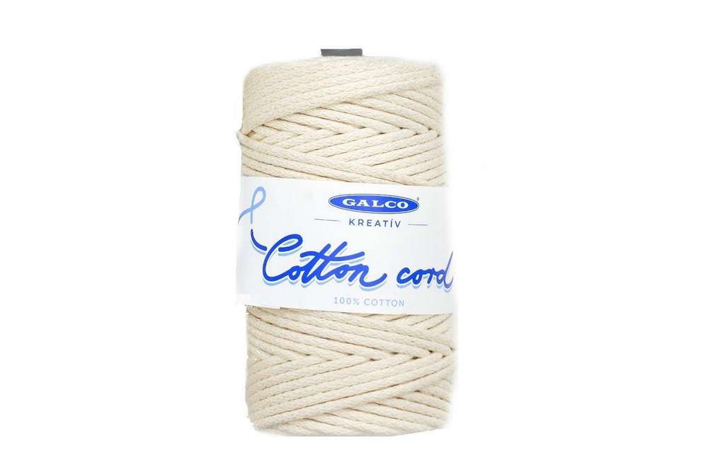 Újrahasznosított pamutból készült tűfonatolt, megfelelő tartású, egyenletes vastagságú, natúr pamutzsinór kézműveskedéshez.